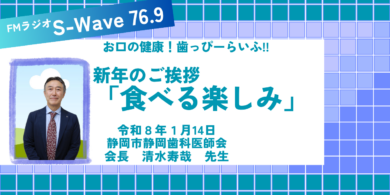 令和8年1月14日(水)FMラジオS-Wave放送「歯っぴーらいふ」に会長の清水先生が出演いたしました。「 食べる楽しみ 」についてのお話で…